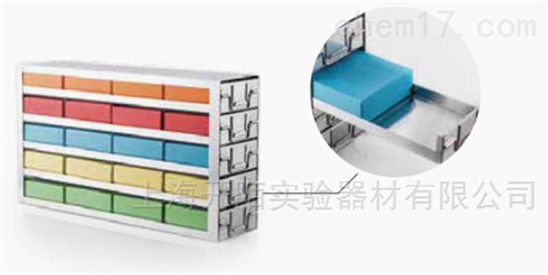 翻边设计避免划伤,抽屉上附有样本标识的彩色标签。