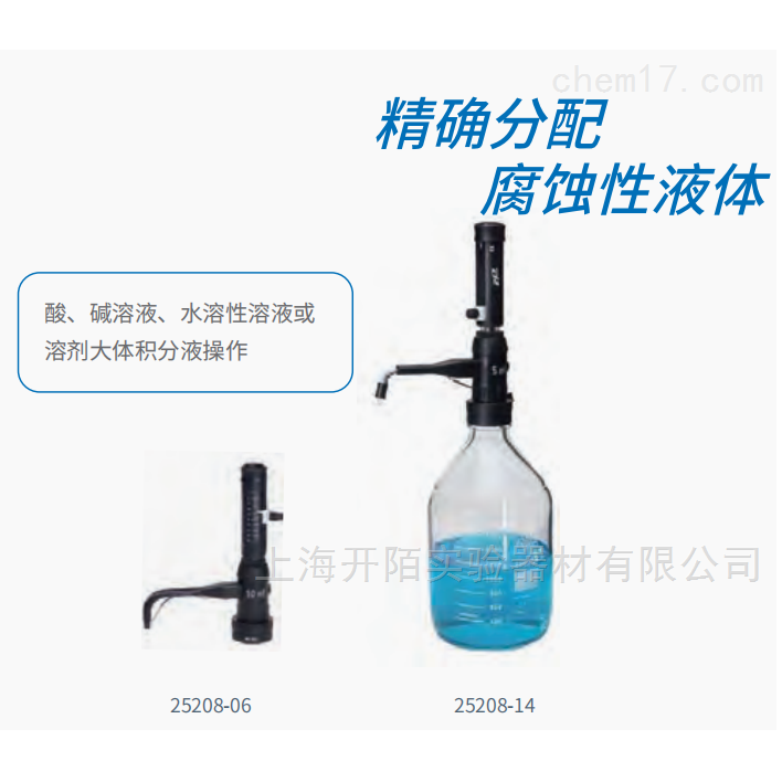 精确分配腐蚀性液体。简单的体积调节,易于校准和清洁。