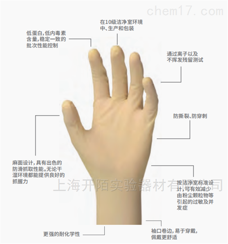 12 寸高级灭菌乳胶手套 制药行业专用适用于AB级无菌区操作